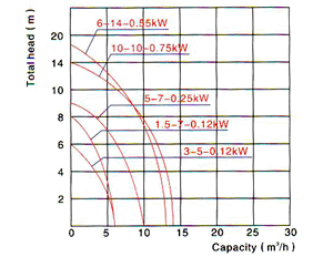 | 型号 | 扬程(m) | 流量(m3/h) | 电压、频率(V、Hz) | 功率(kw/HP) | 配管内径(mm) | 外形尺寸(cm) | 重量(kg) |