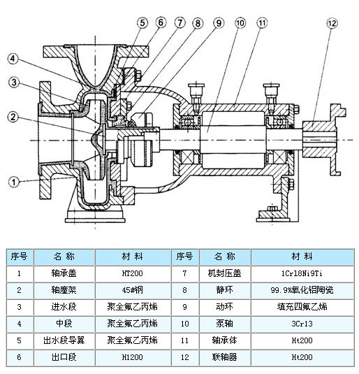 IHF系列氟塑料衬里离心泵技术参数